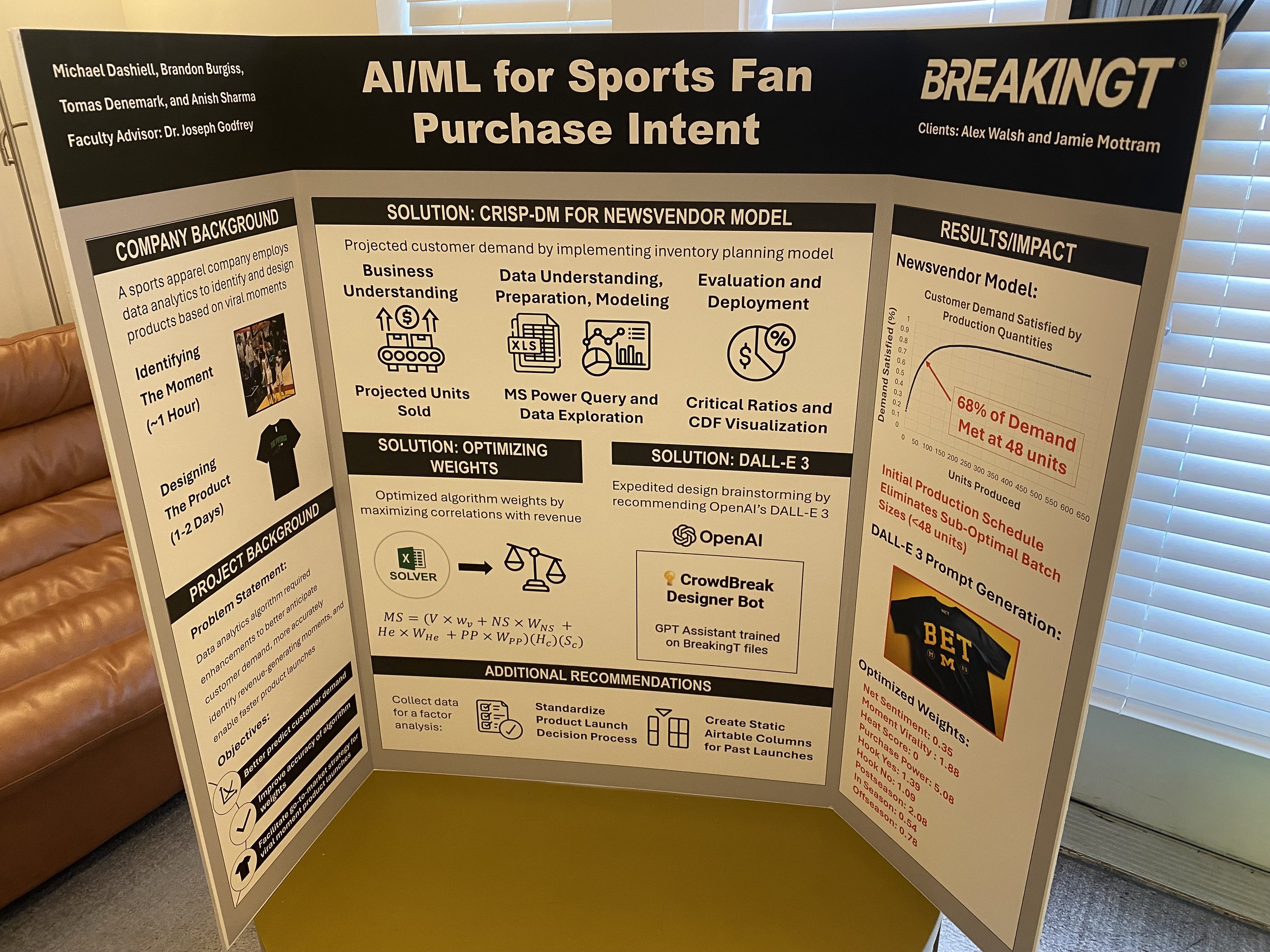 Strategic Product Planning: Analyzed and optimized design and production planning processes for BreakingT, a sports apparel company, to align with fast-moving sports events and consumer demand.
